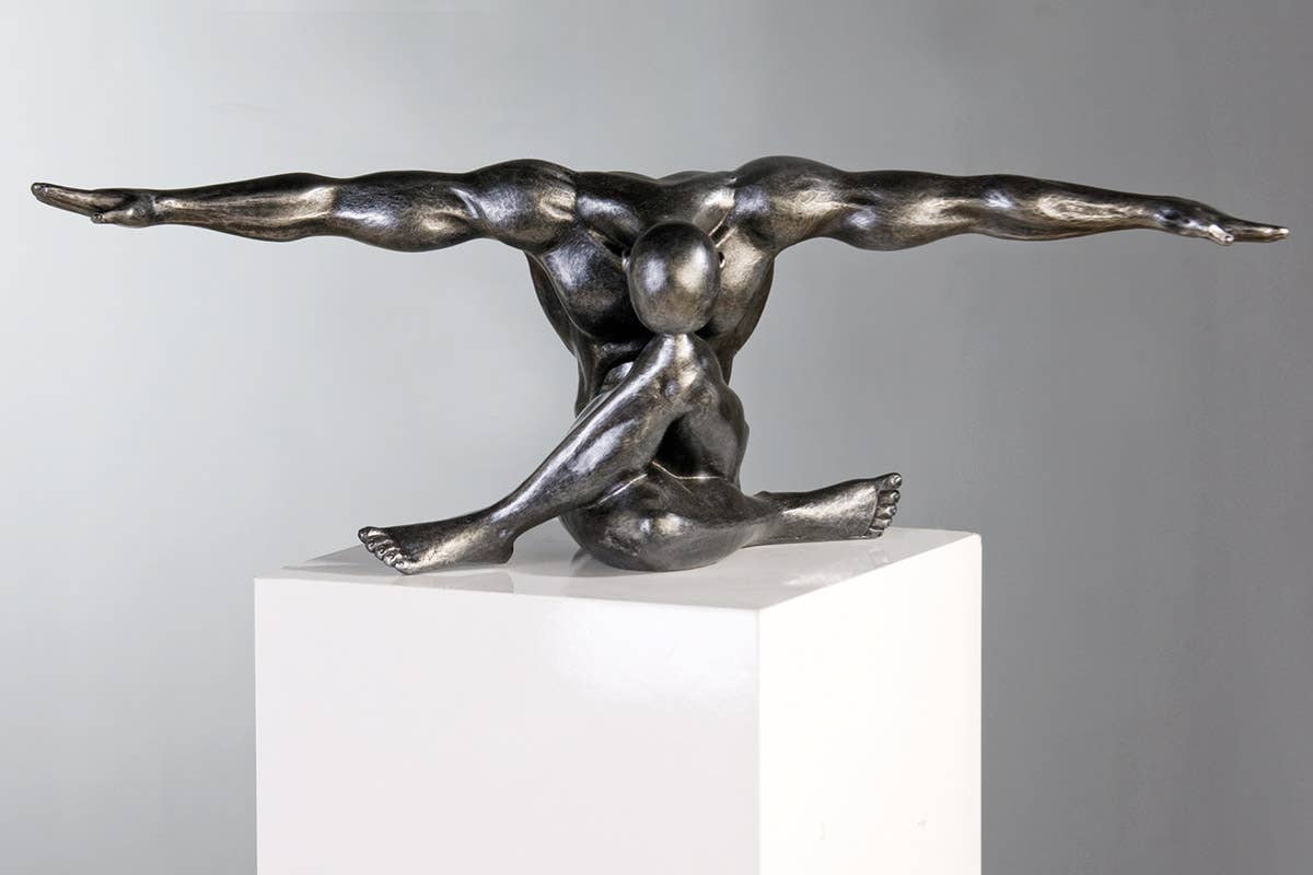 Die Figur „Cliffhanger“ besticht durch ihre silberfarbene Polyresin-Oberfläche mit antikem Finish, die ihr eine edle und zugleich zeitlose Ausstrahlung verleiht. Mit einer Höhe von 61 cm und einer Tiefe von 20 cm ist sie ein markantes Dekorationsobjekt, das in jedem Raum Akzente setzt. Die hochwertige Verarbeitung sorgt für Langlebigkeit und Detailtreue, ideal für Sammler und Liebhaber kunstvoller Skulpturen.
