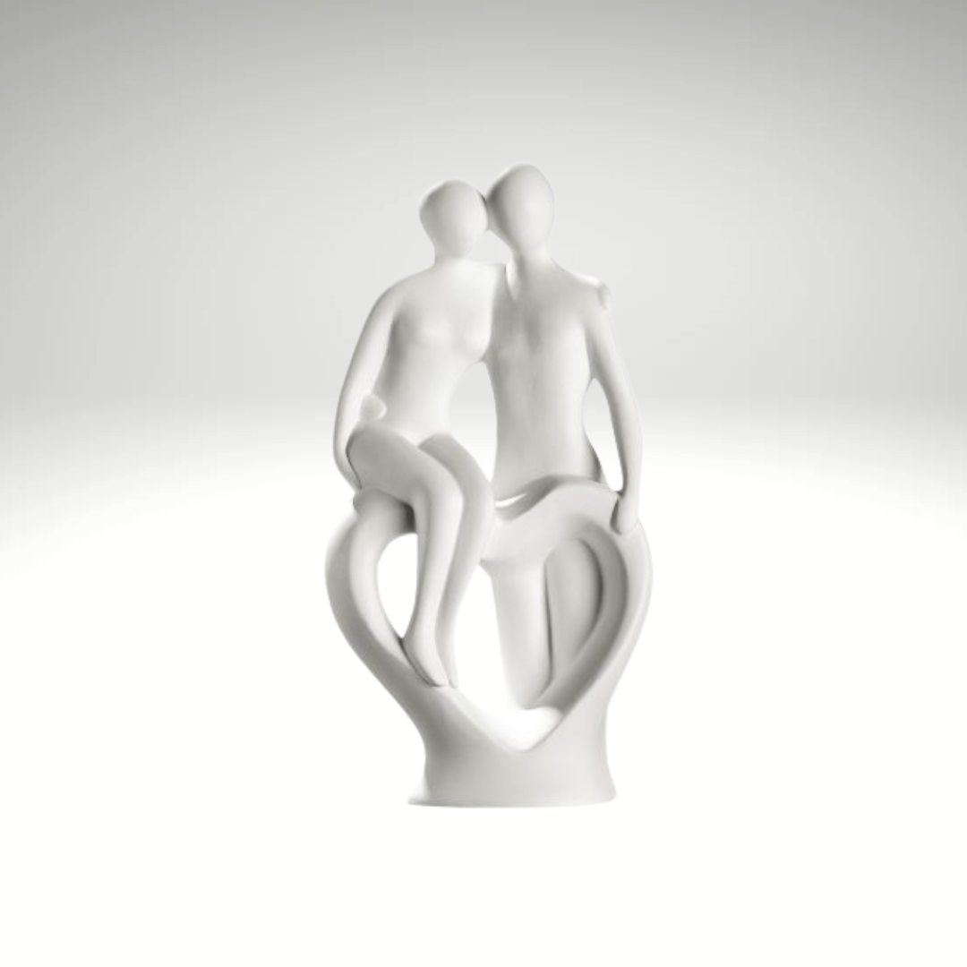 This elegant "Hearty Support" figure shows a stylish couple sitting on a heart motif and symbolizes affection and connection. The handmade sculpture is made of high-quality ceramic in a delicate cream color and impresses with its gentle shape and loving design.