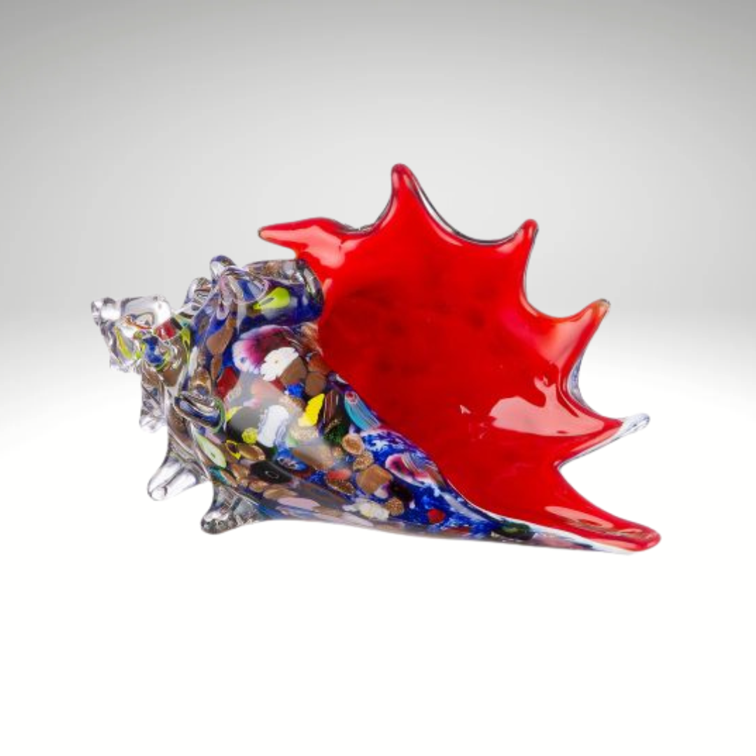 Diese beeindruckende Glasfigur "Muschel" ist ein wahres Highlight der Glaskunst. Mundgeblasen und in liebevoller Handarbeit gefertigt, überzeugt dieses Dekoobjekt durch seine faszinierenden Farbspiele und seine kunstvolle Form. Die Kombination aus leuchtendem Rot und bunten Elementen bringt Dynamik und Eleganz in jeden Raum.